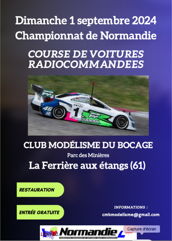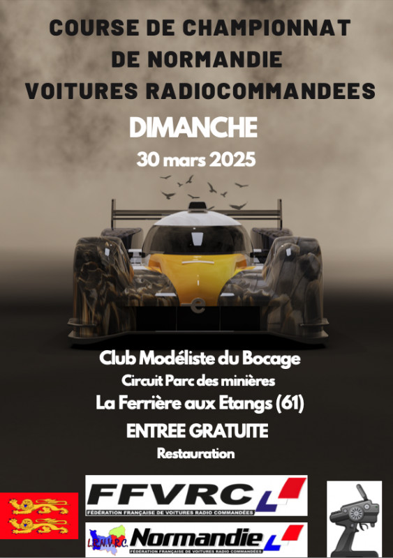 Inscription via le site de la FFVRC - Fédération Française de Voitures Radio Commandées, clôture des inscriptions le 18 septembre.